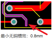 | 最小非金屬槽 | 0.8mm | 最小鑼刀為0.8mm | ![]() |